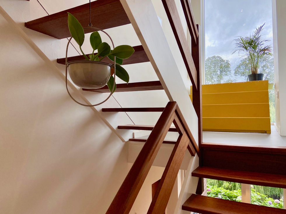 The existing 1960's Sapele open tread wood stair was identified as the thread to stitch the fabric of the old to the new. Sapele cladding and an extensive collection of bespoke mid-century inspired built-in furniture, designed by C&O Architects create a unique interior that speaks of its past whilst living in the future.